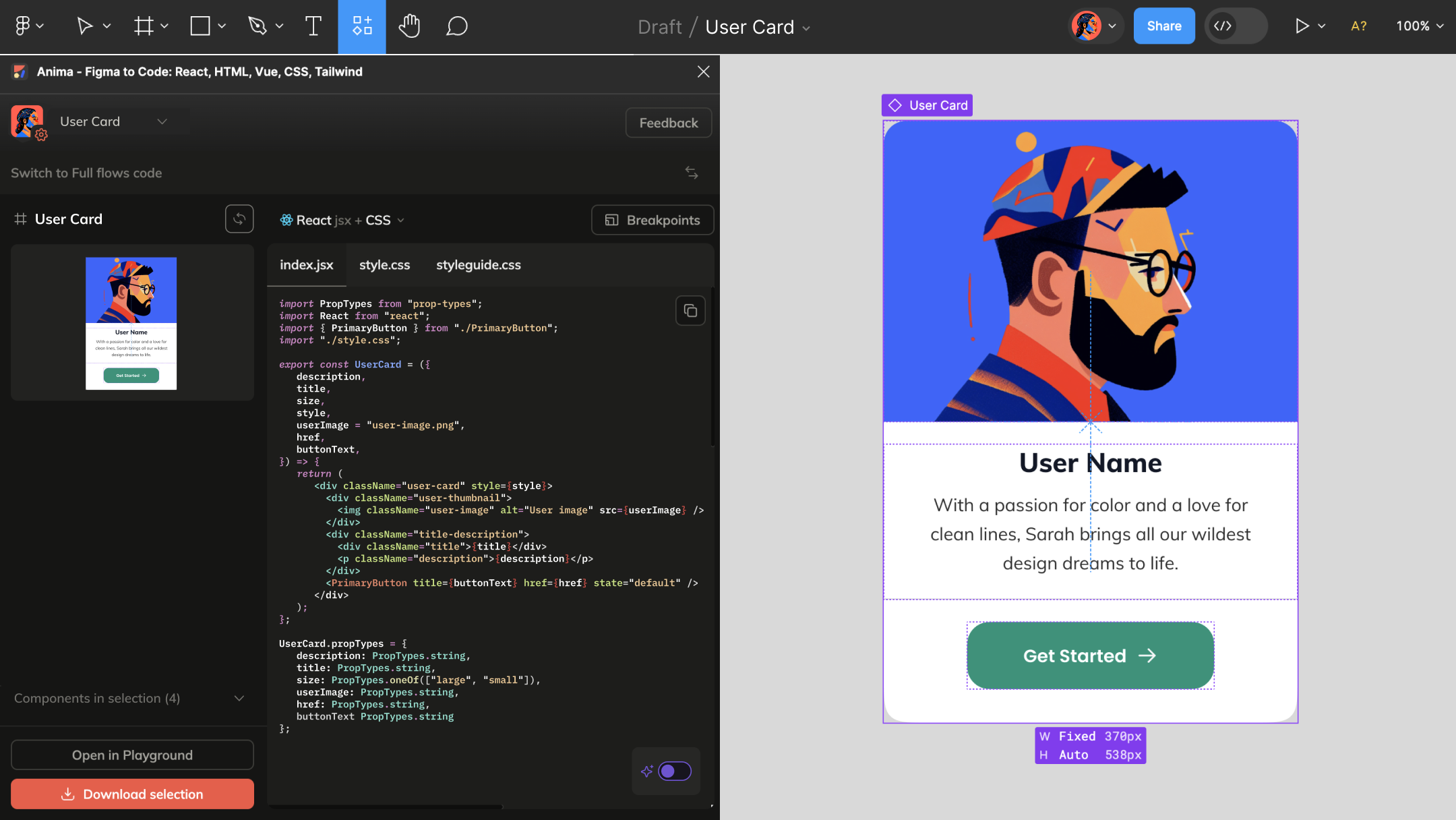 For non Figma users, animaapp.com offers the option to paste a Figma link and get code directly on the web.