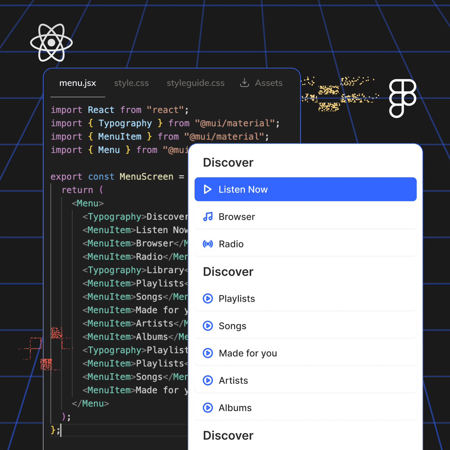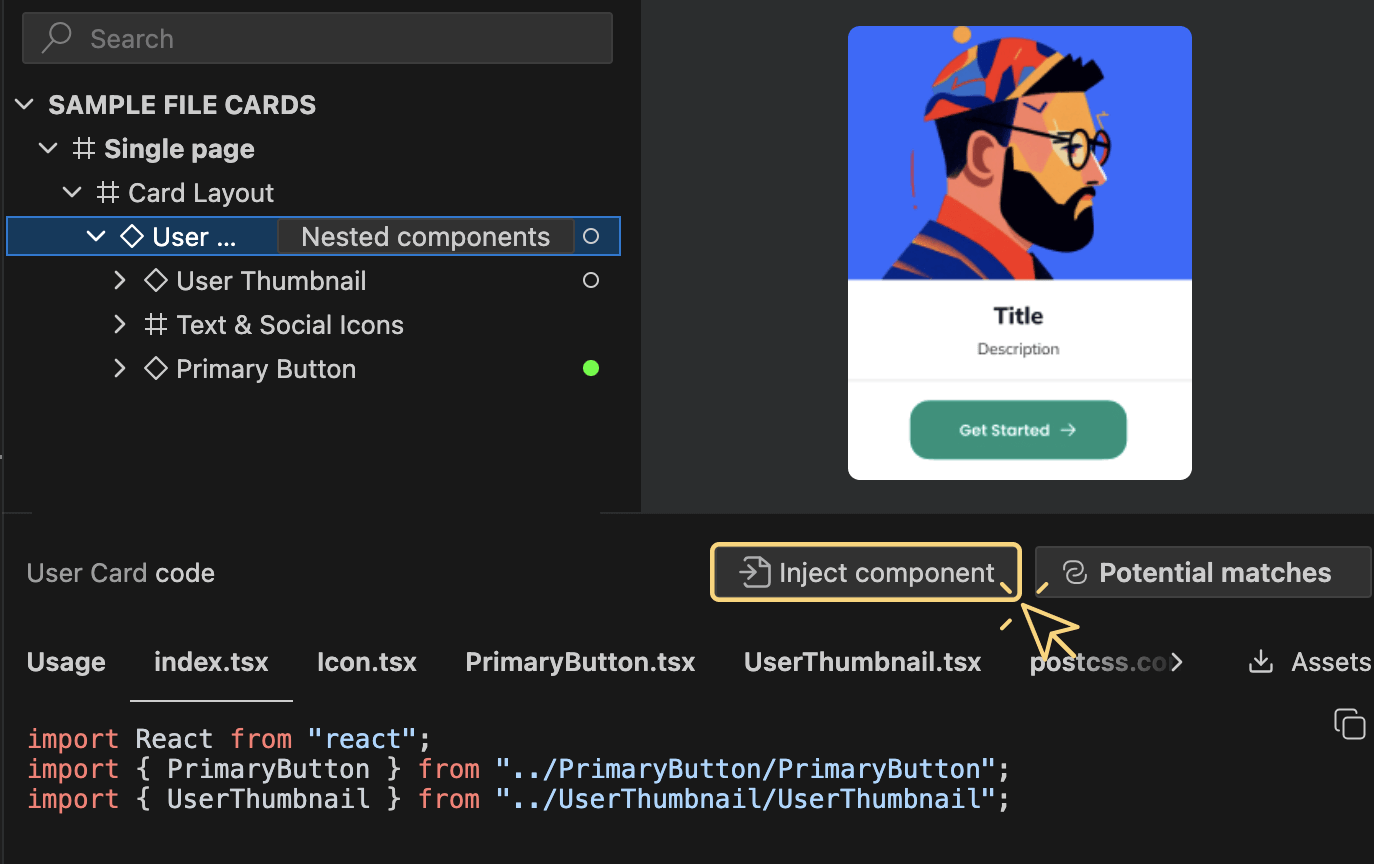 Convert Figma to React code effortlessly, in VSCode, by leveraging your existing codebase and reusing your design system components.