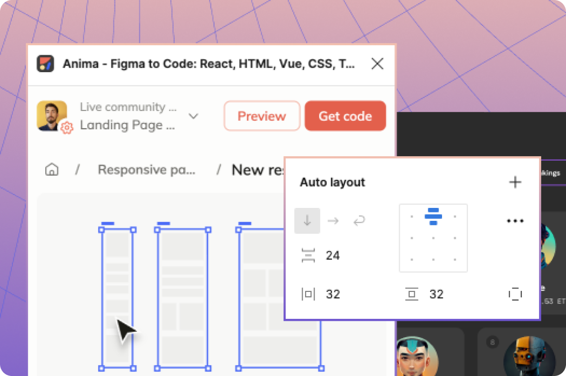 Make the website responsive using Figma’s native auto-layout feature and Anima’s responsiveness options.