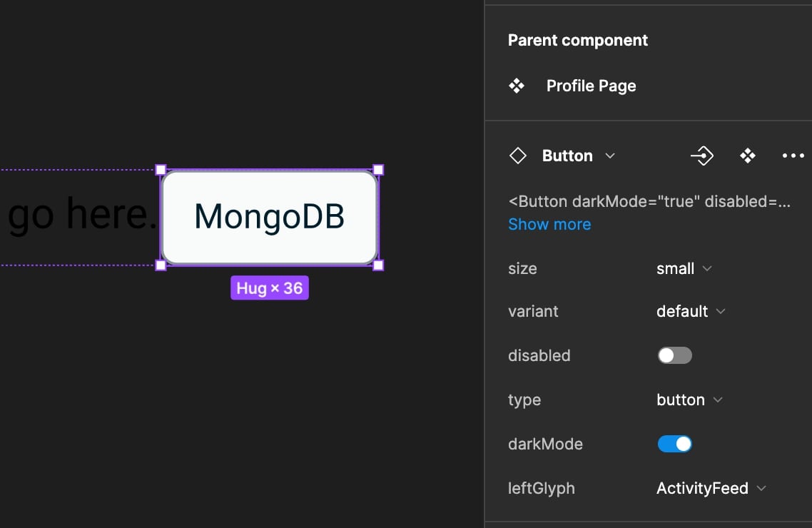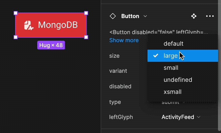 What’s also great is that you can preview the code you’ll implement directly from Figma’s inspect panel. The code includes the updated props, and the naming conventions are identical to those used in Storybook: