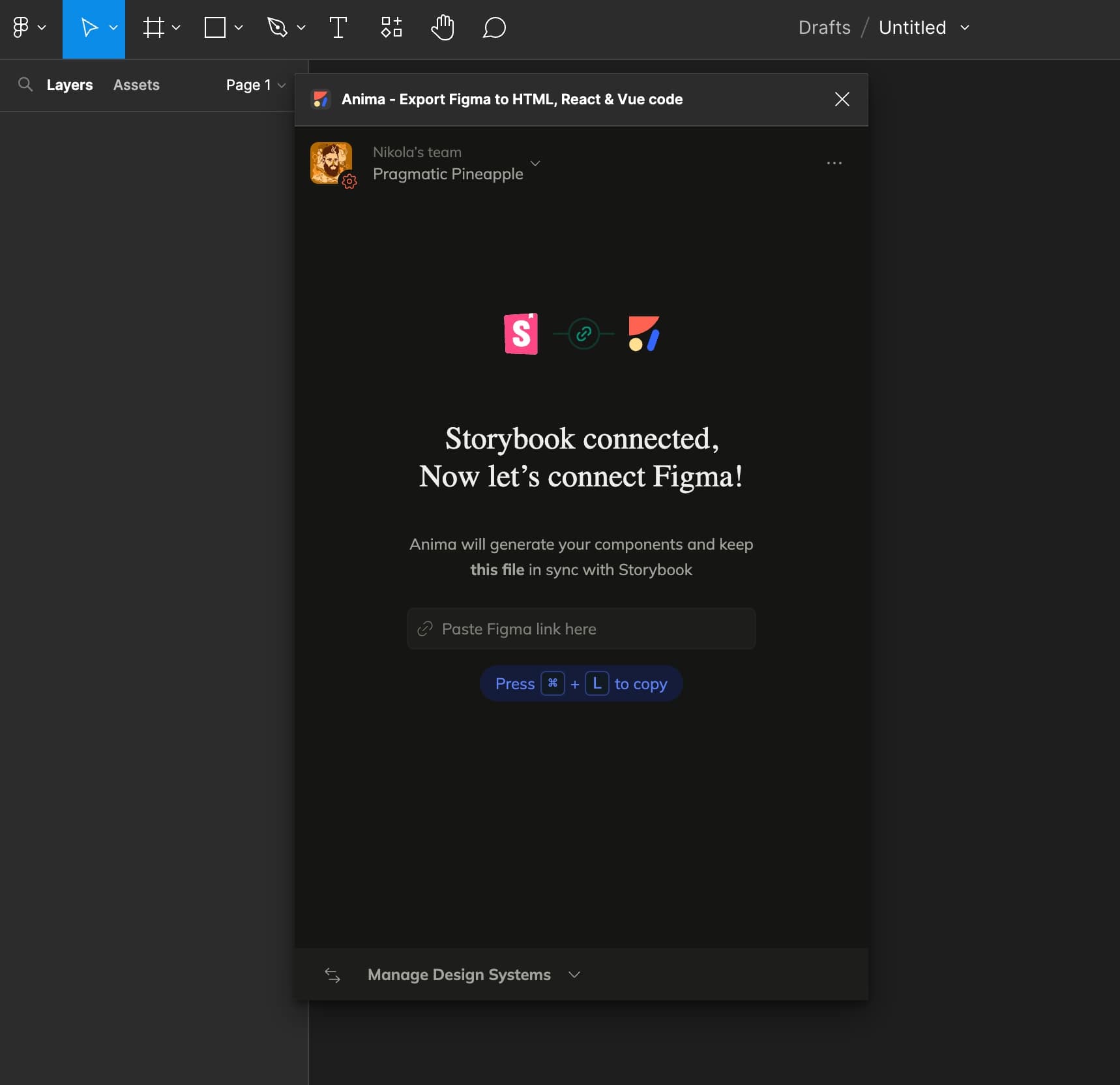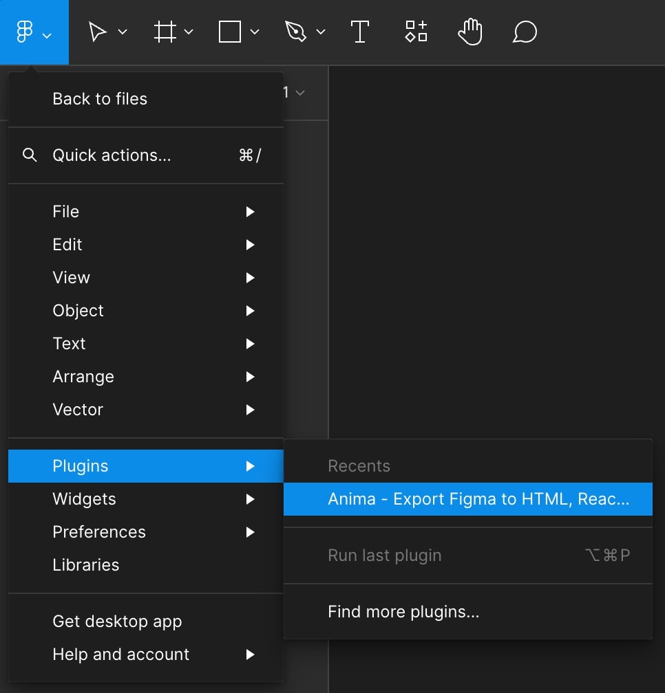 First off, you will need to download the Anima plugin for Figma. Once you have it installed in Figma, go ahead and open the Anima plugin.