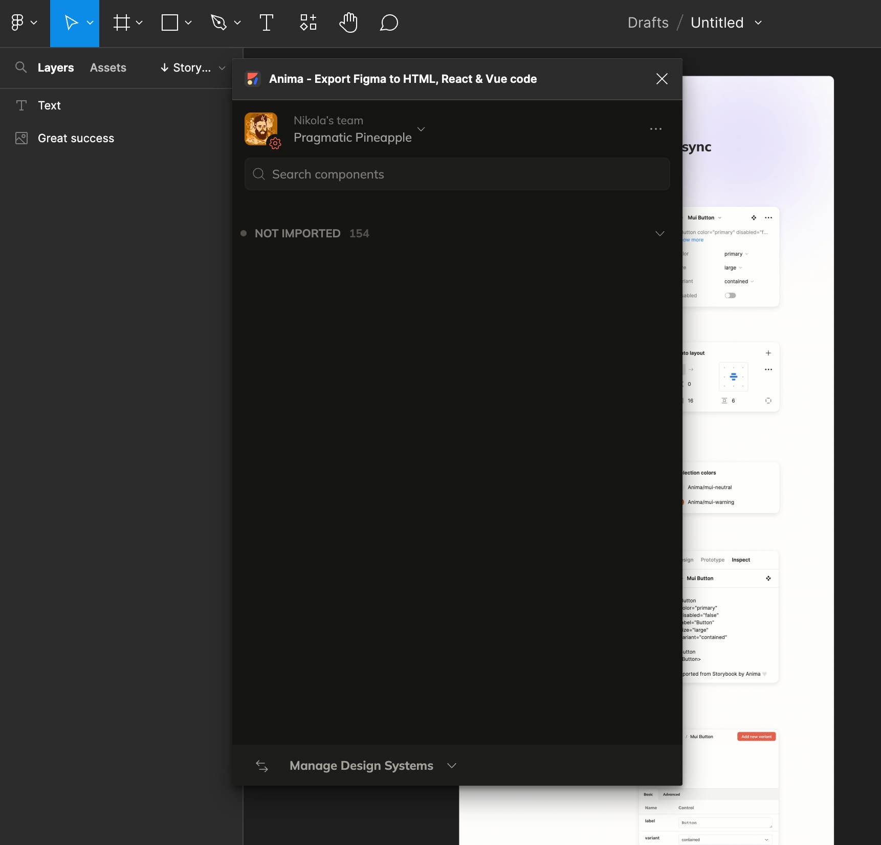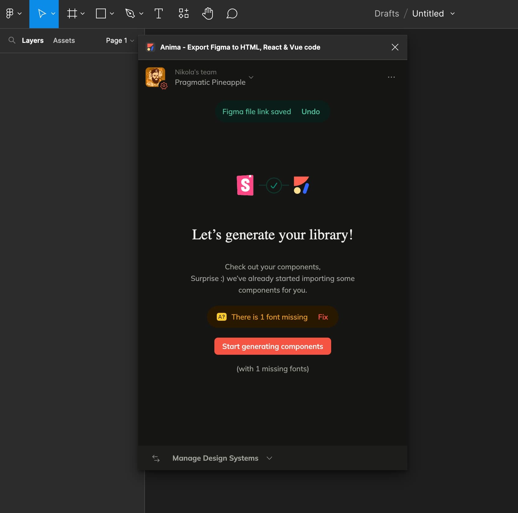3. Once the sync is finished, go to Figma and the Anima plugin will show the following prompt: