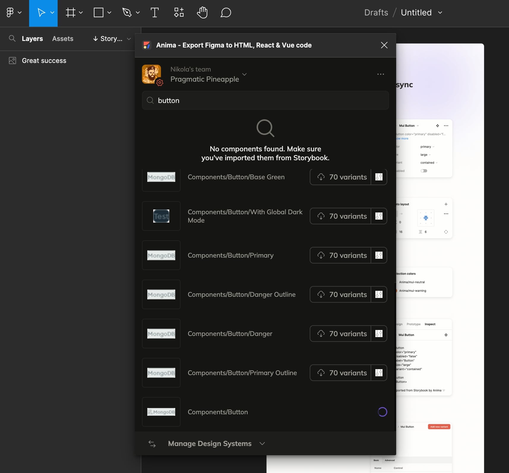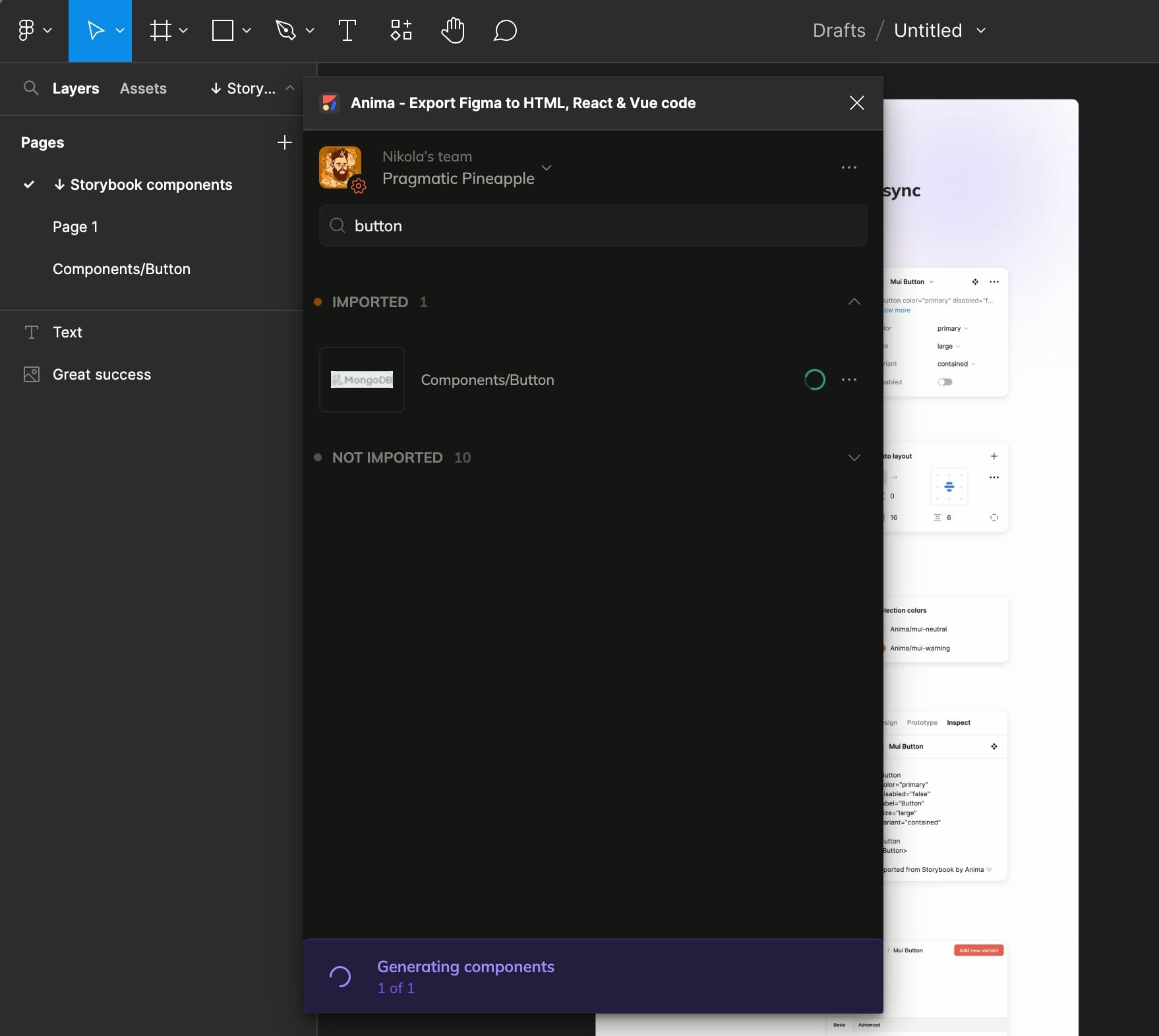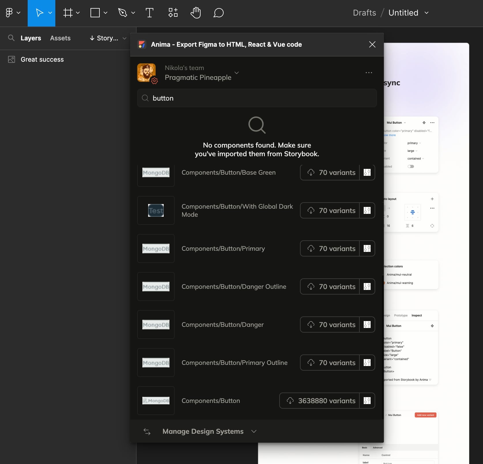After some time, Anima will wire up the Storybook and Figma and allow you to generate Figma components from Storybook.