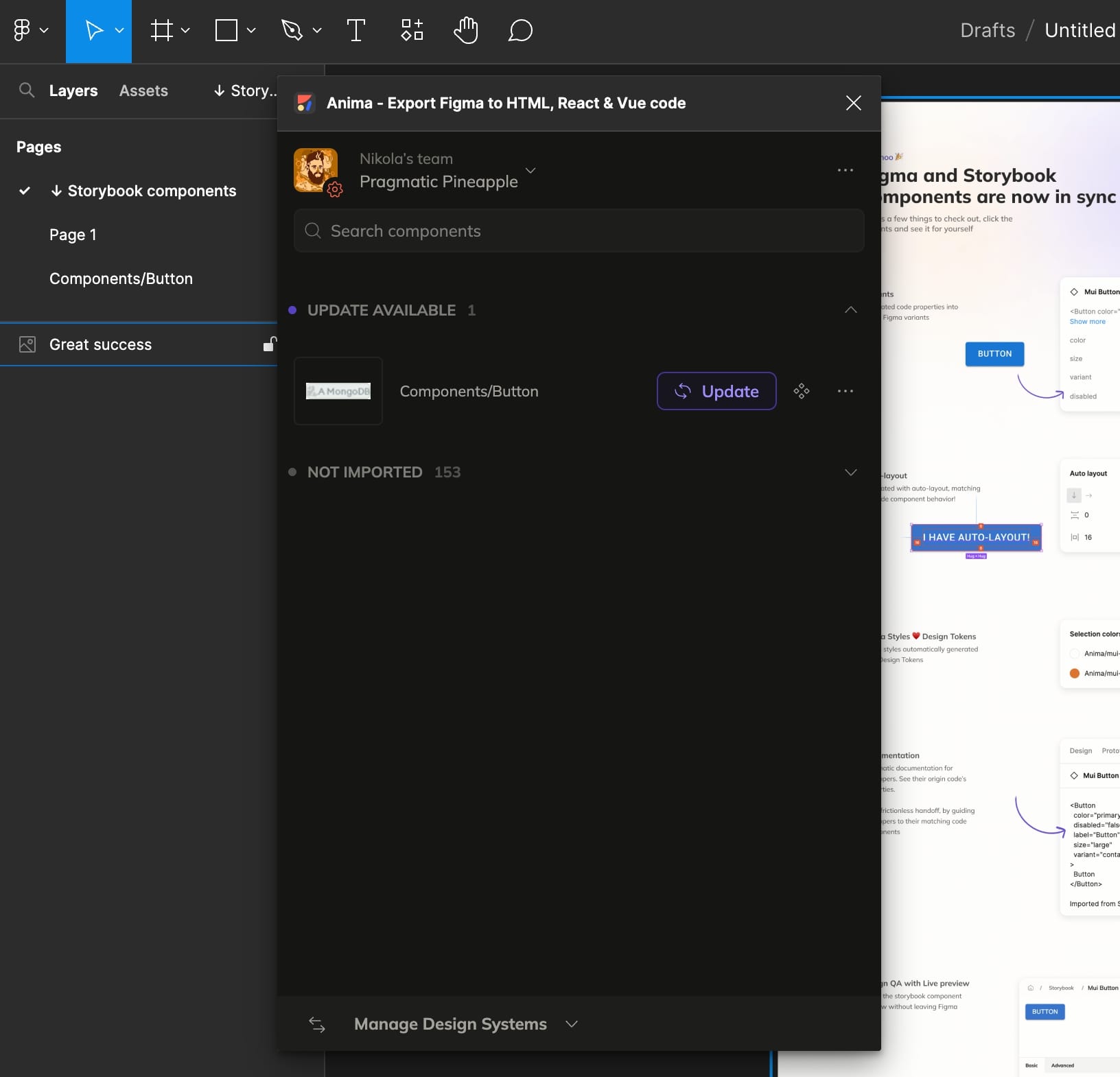 All we need to do is click “Update,” and Anima will sync the changes to the existing Button: