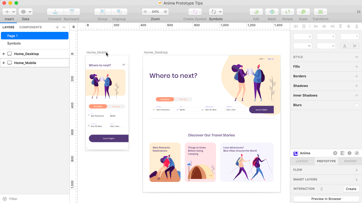 With Anima’s Breakpoints and Pins, you can create responsive prototypes without leaving Sketch.