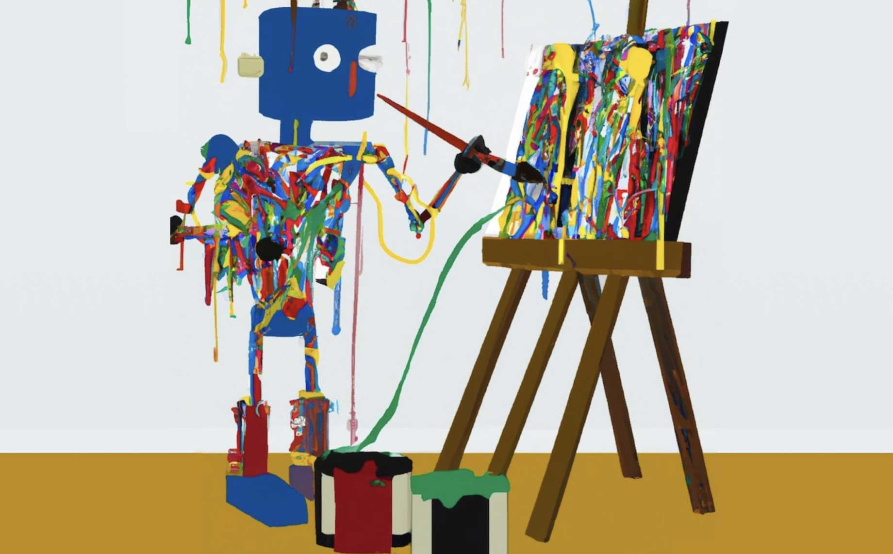 Reading Time: 4 minutesGenerated by Dall-e 2 AI: “A robot painting a Jackson Pollock rendition”