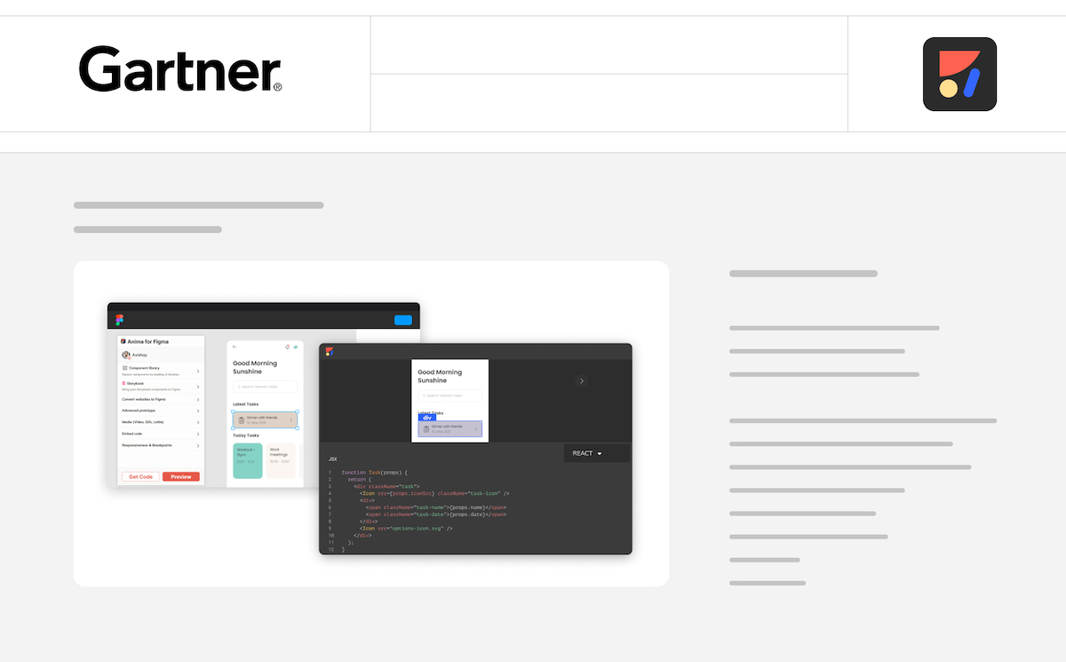 Reading Time: 4 minutesGartner’s newly-released report about the benefits of design-to-code technology for organizations has a lot to say about Anima’s platform—and how R&D leaders should utilize it.
