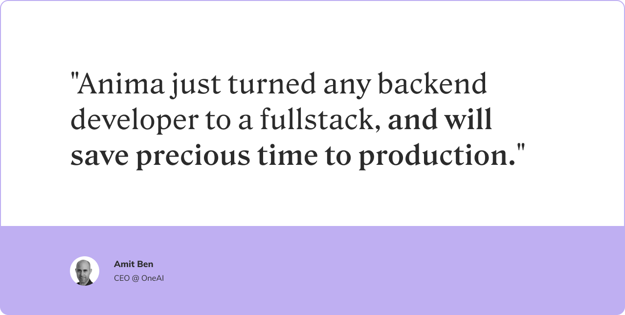 Anima’s design-to-code platform automates frontend development, turning image-based designs into clean frontend code for developers that, with a little refactoring, is ready to deploy.