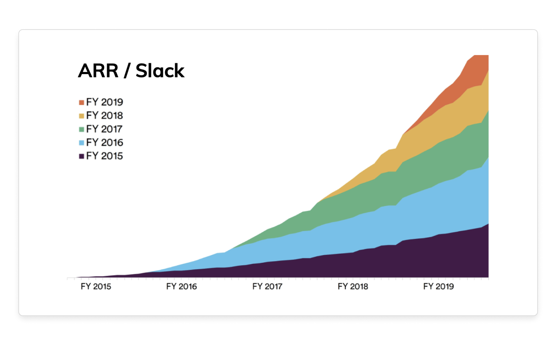 Slack is an outstanding PLG B2B company. The expansion of contracts over time results in negative churn. Yes, you read it right. At Slack, $1 of subscription today, is worth $1.40 the following year. In other words, their NDR is 140%. How could this be? Contract expansion compensates for the churn of that cohort, resulting in this beautiful chart from their S-1 application.