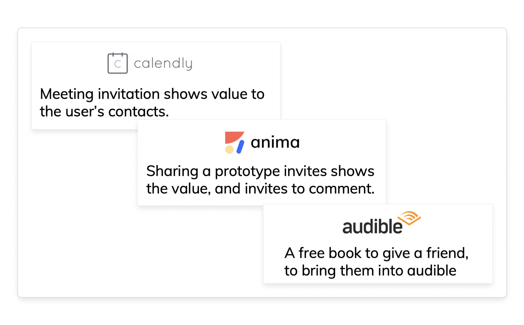 Example #1: Calendy a scheduling platform that helps users book appointments and meetings easily across time zones. Users send a calendy to the person they are meeting and then that person has just experienced the comfort (value) of the product.