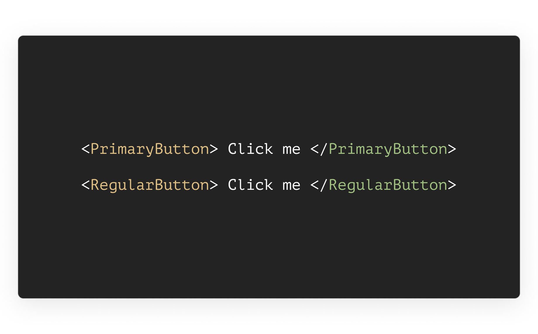 As a programmer, I would create a single component “button” that receives a parameter indicating the button’s variant that should be presented.