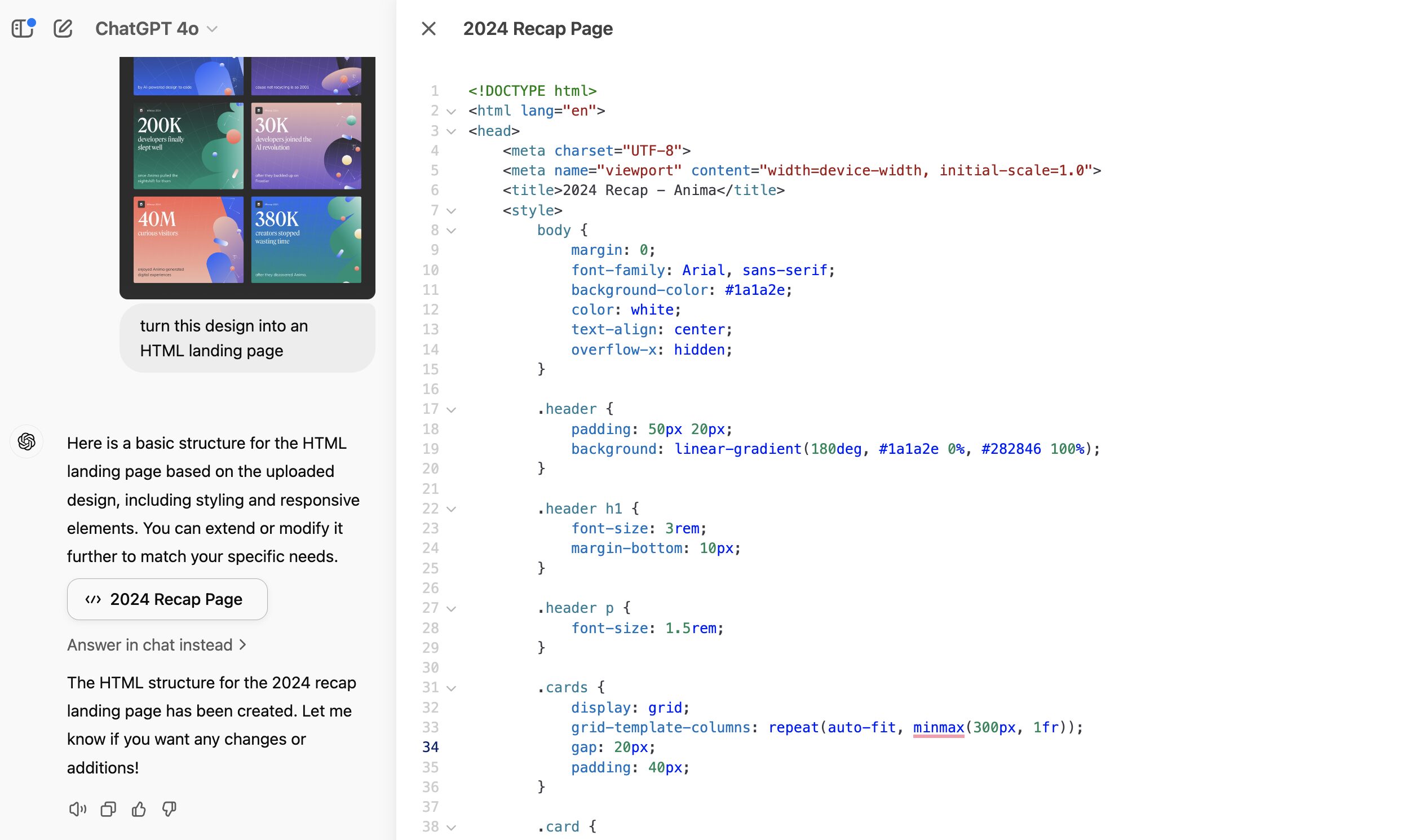 While ChatGPT and Anima serve different purposes, they complement each other perfectly in a Figma-to-code workflow: