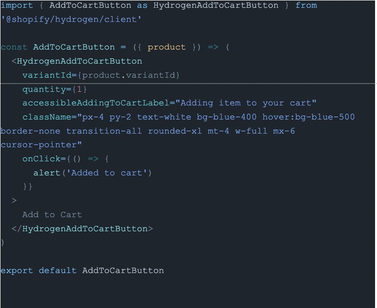 - Create AddToCartButton.client.jsx file inside the components folder with the following code:
