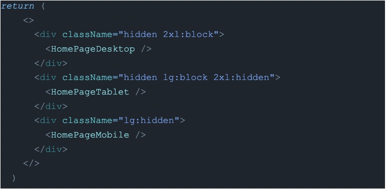 - Make each router page display the corresponding component depending on the screen size. For example: