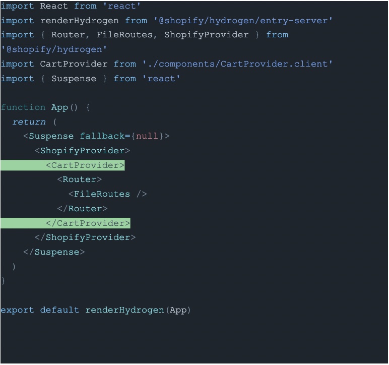 - Create CartProvider.client.jsx inside the components folder with the following code inside: