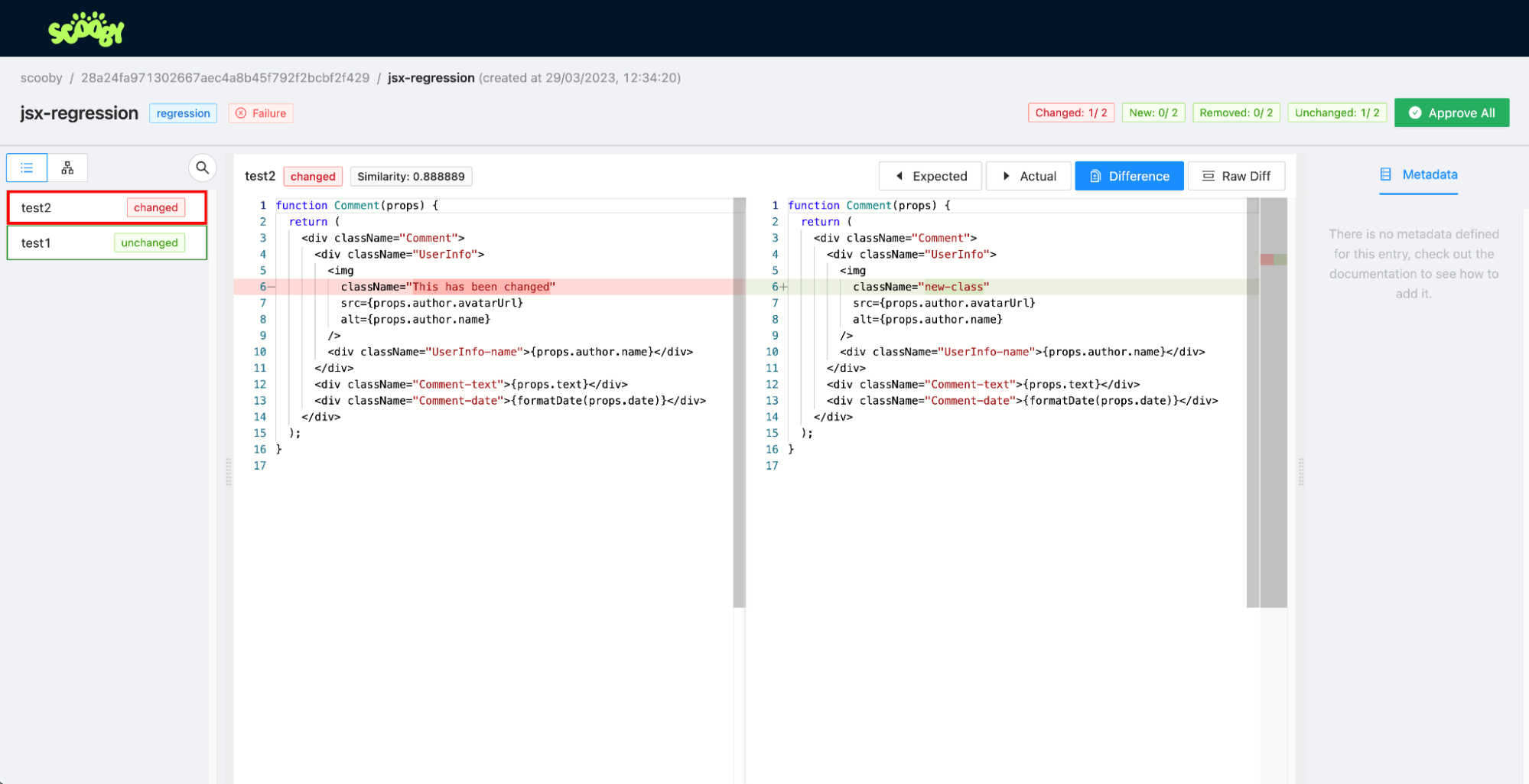 As our platform generates code, we want a seamless way to compare how the code that we generate looks before and after every change we make. That’s why we’ve built Scooby in a generic way that can compare other source types aside from visual ones.
