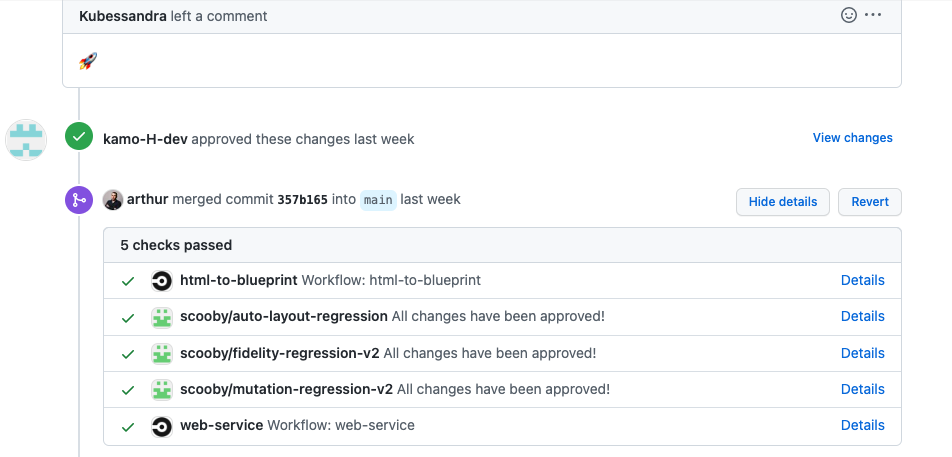 Once all tests pass, Scooby posts the results to the original PR that triggered the tests: