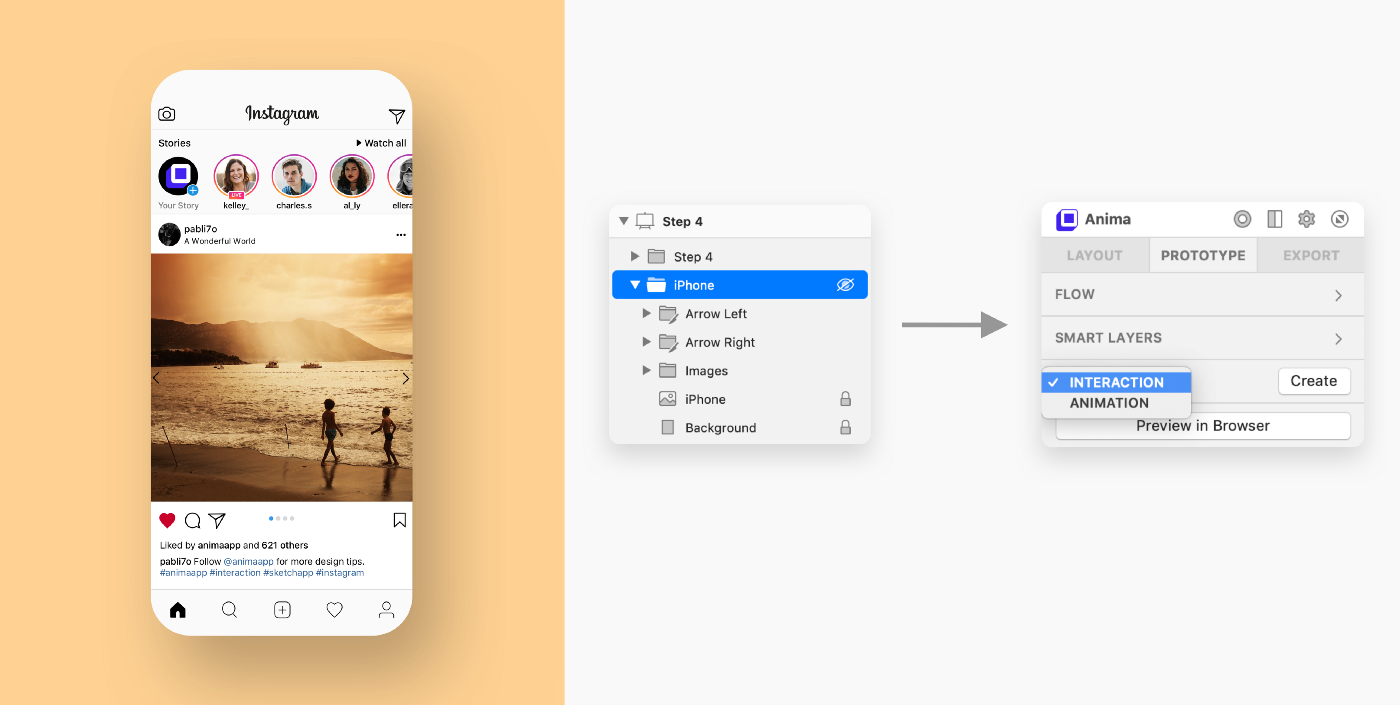 Anima allows designers to create high-fidelity prototypes right inside Sketch, Adobe XD, and Figma and export HTML & CSS in a single click.